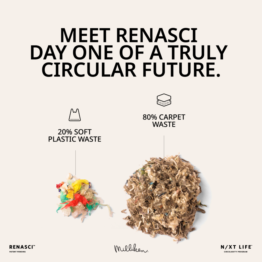 Renasci™ also plays a key role in Milliken’s broader N/XT LIFE™ Circularity Program, which drives the company’s commitment to long-term sustainability and product stewardship.
