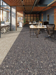 It can be used as a resilient alternative to hard flooring and luxury vinyl tile flooring, which itself generates an estimated 60,000 tonnes of waste each year. It meets the demands of commercial interiors without the environmental impact of traditional vinyl alternatives.